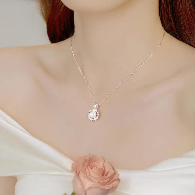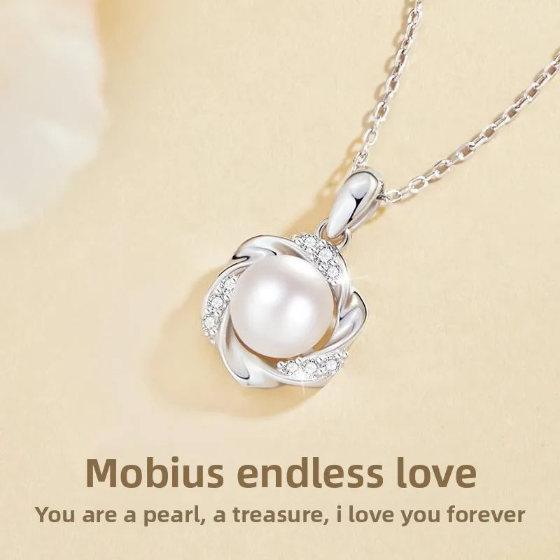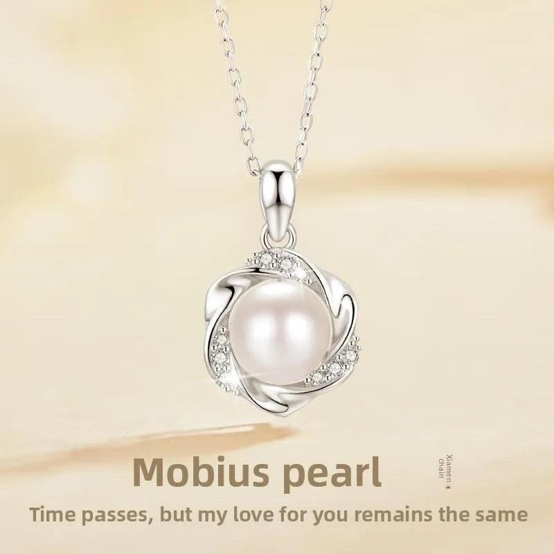 925 Sterling Silver Mobius Pearl Necklace Elegant Clavicle Chain Mommy Style Mother's Day Gift Unique High-End Feeling Pendant