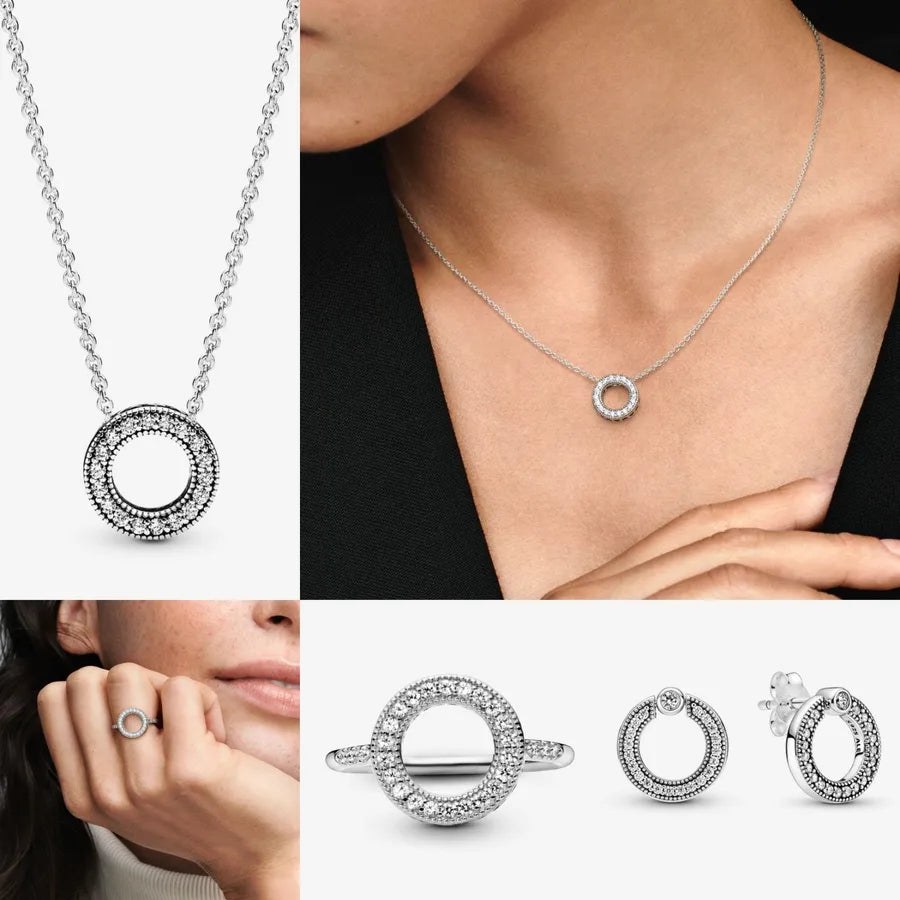 Bright Round Pendant Pure Silver Jewelry Set Elegant Romantic Gift For Girlfriend Fashionable Combination Of Necklace Ring Earrings