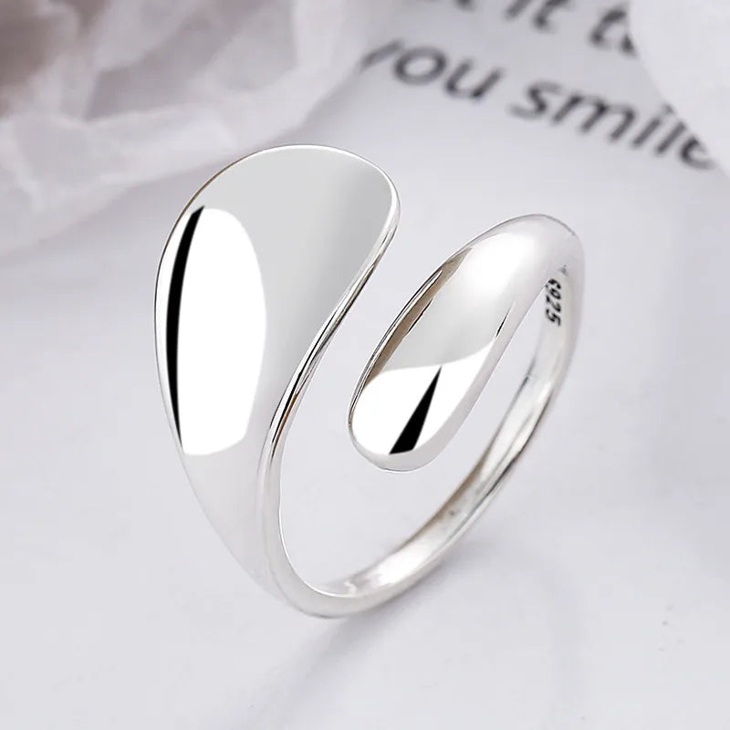 Cloud Tide Villa S925 Sterling Silver Minimalist Smooth Surface Irregular Shape Trendy Match All Open Ring For Women And Unisex