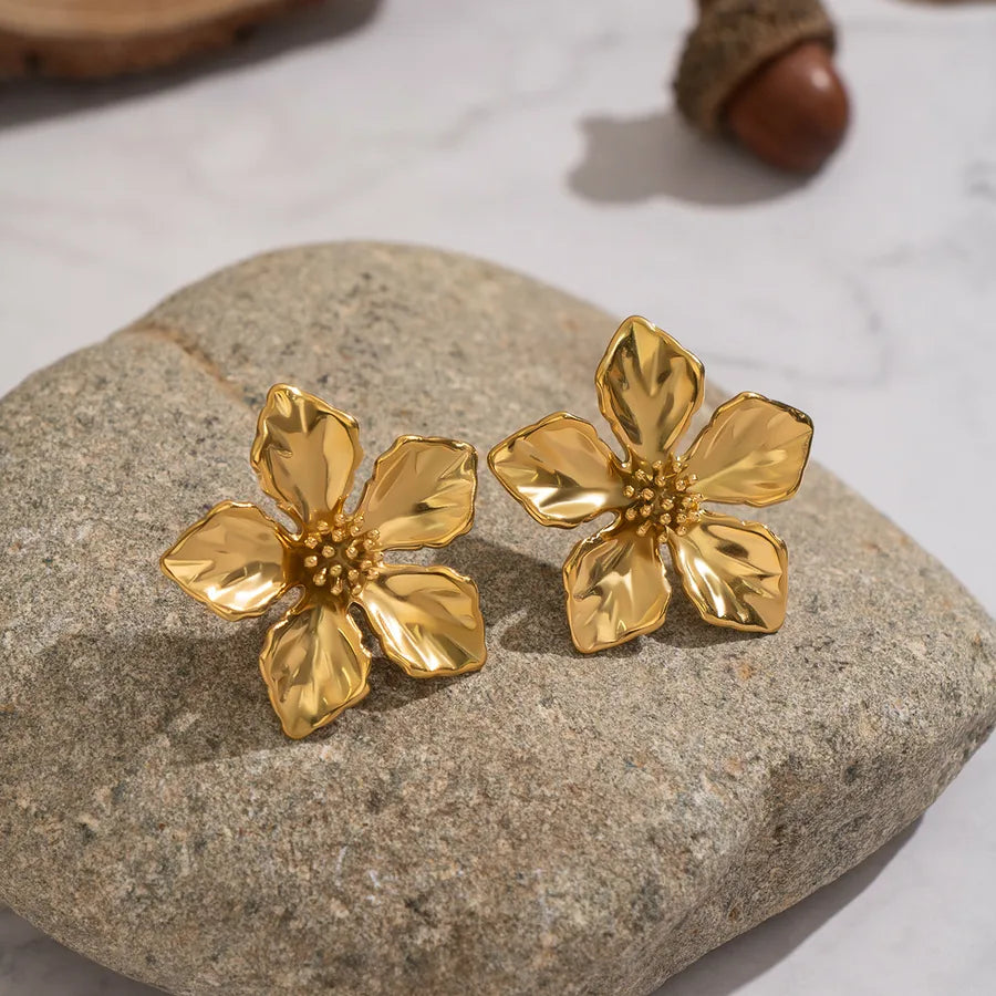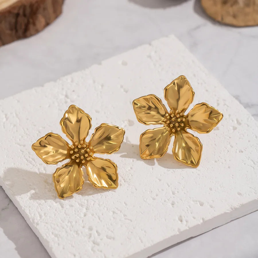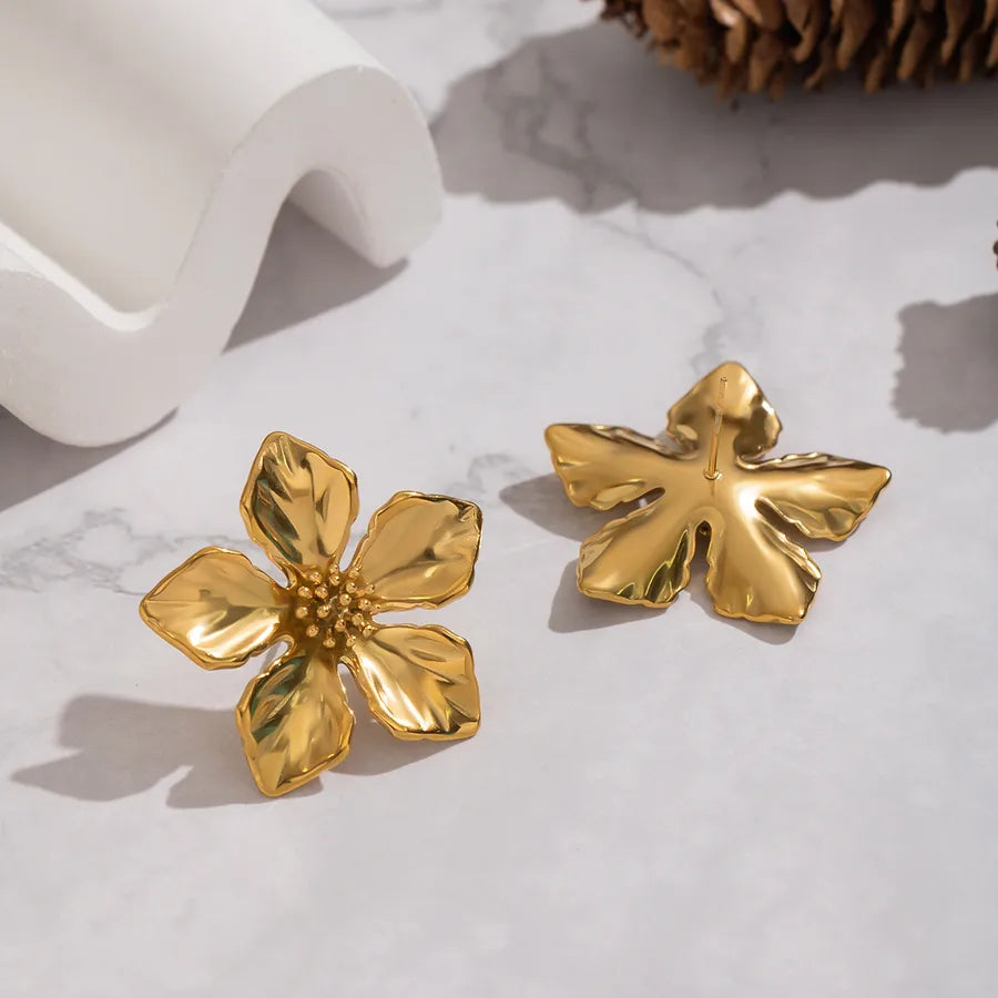 Elegant Floral Stainless Steel Earrings Fashionable Luxury Women's Accessories Butterfly Cap Ear Studs Polished Surface