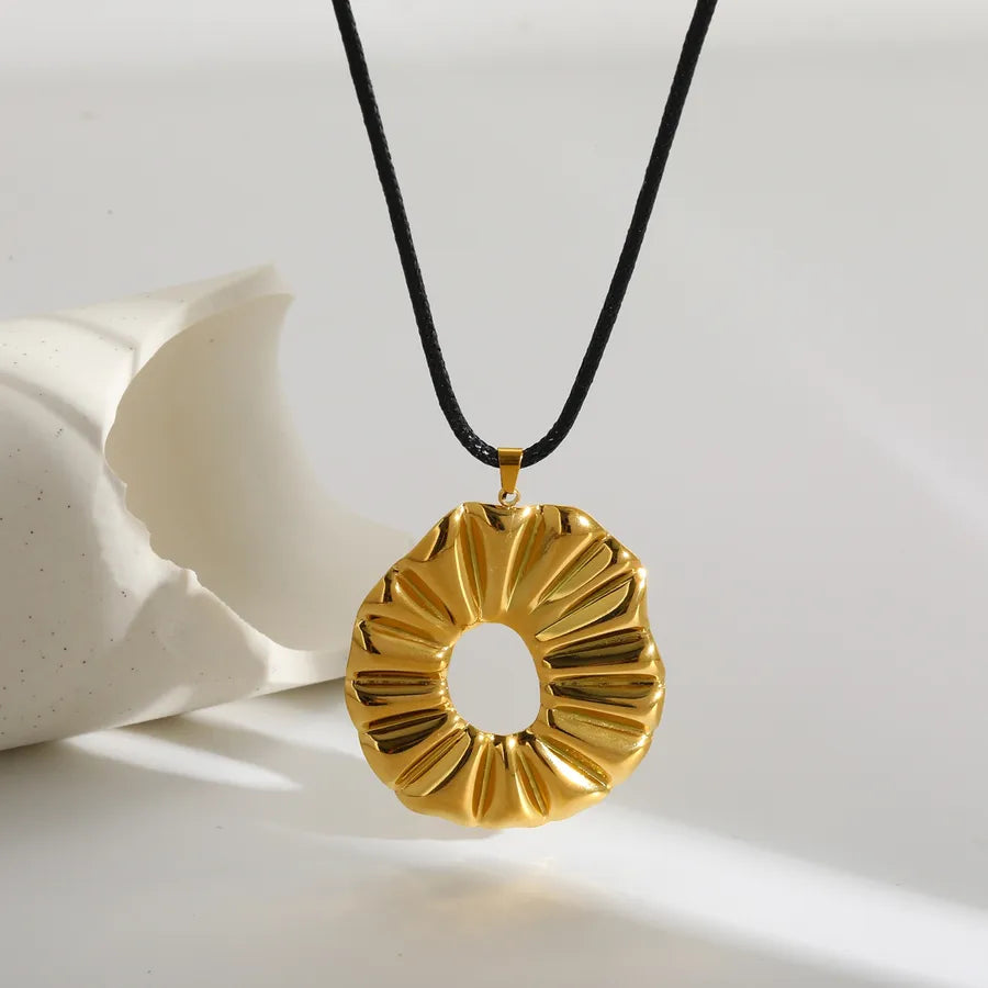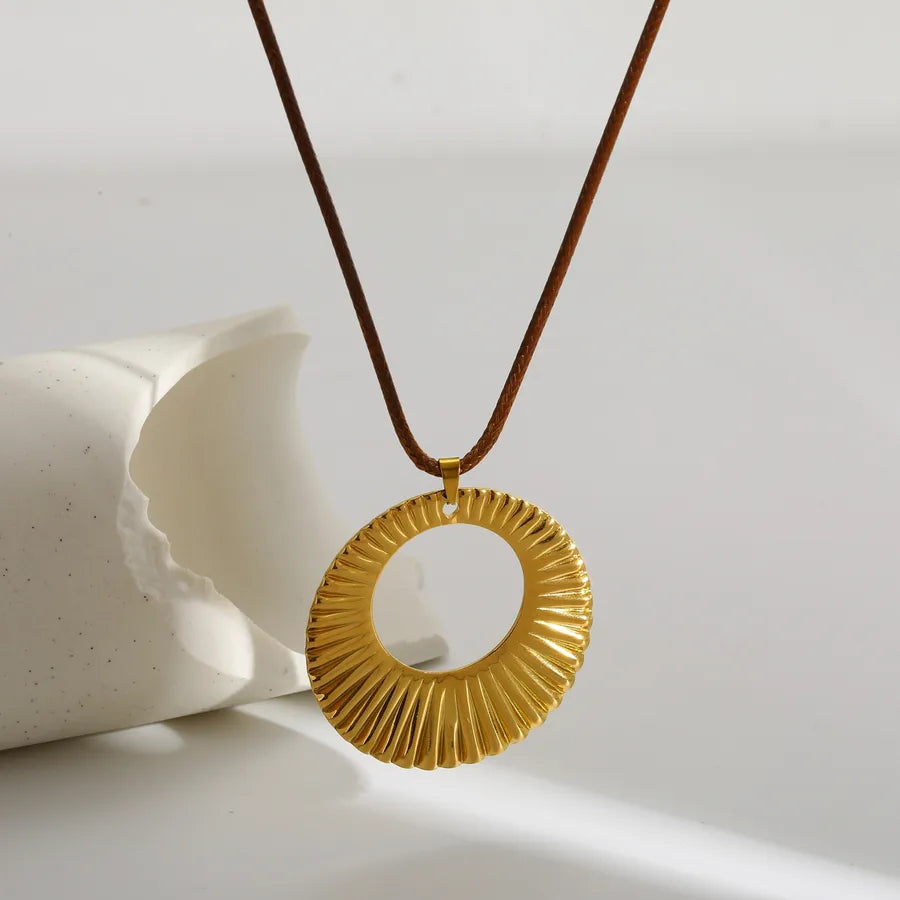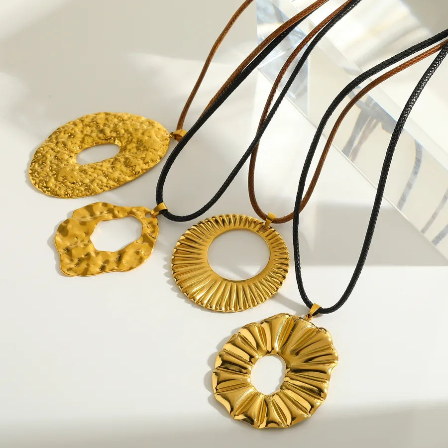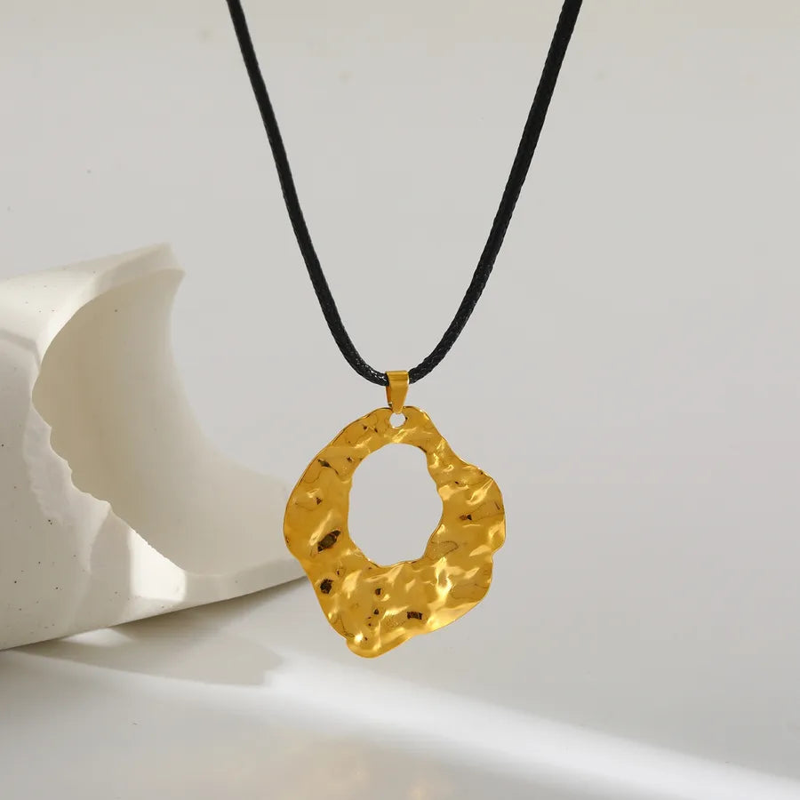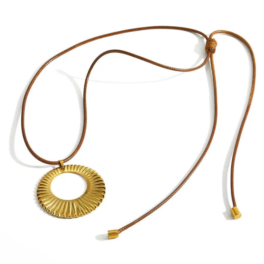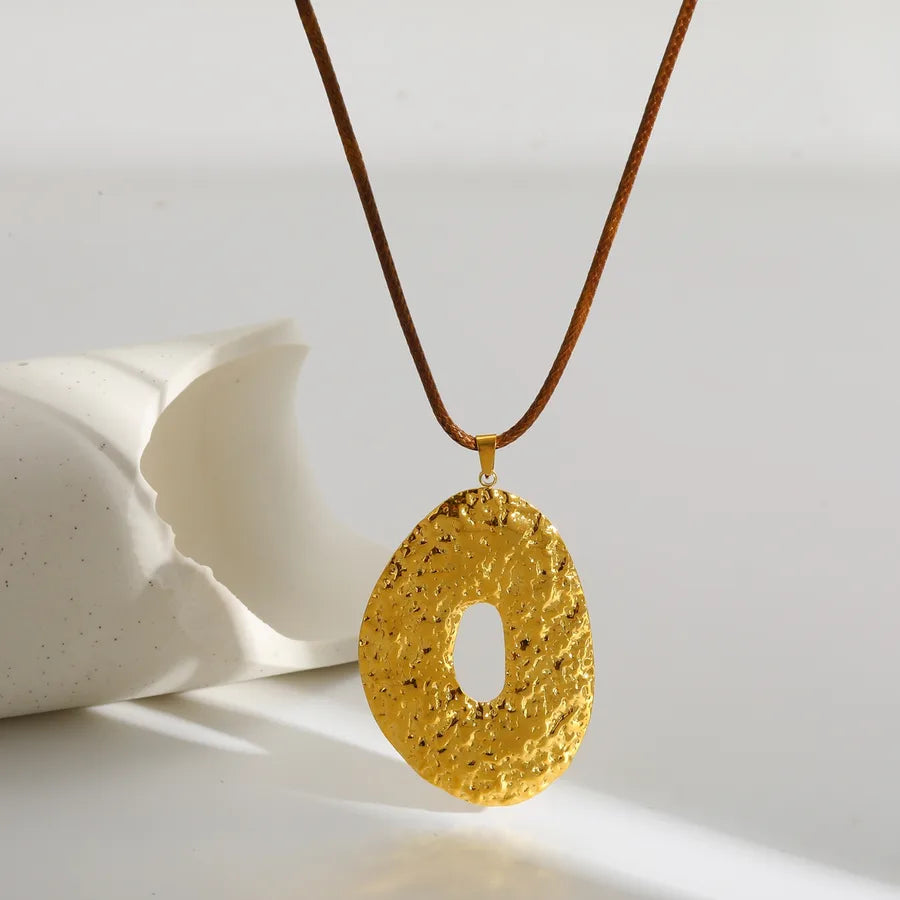 Elegant Oval Stainless Steel Pendant Wax Rope Necklace 18K Gold Plated Fashion Design Women's Adjustable Chain Jewelry Accessory