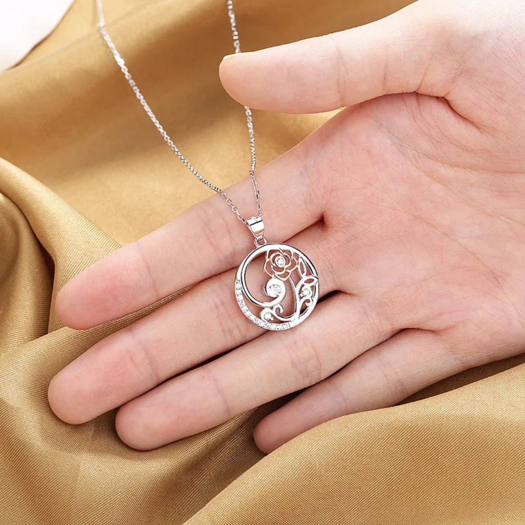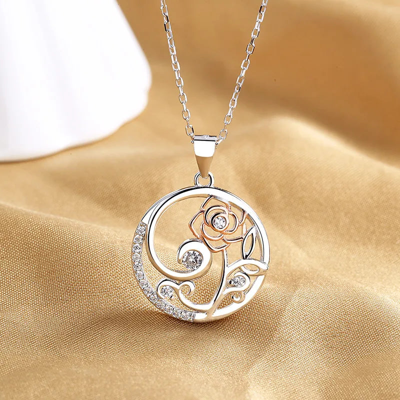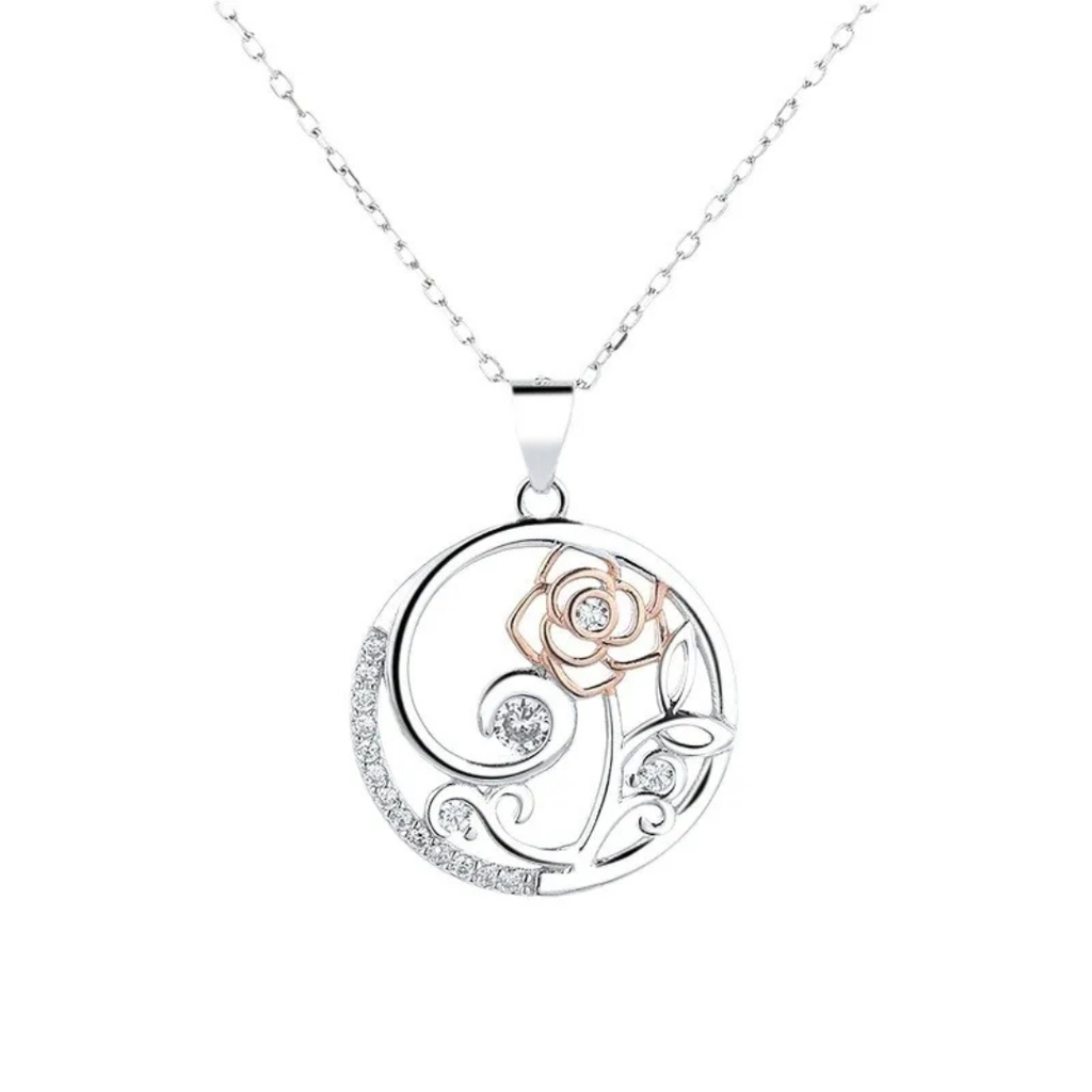 Elegante Silberhalskette mit Rosendesign und Zirkonia-Kristallen