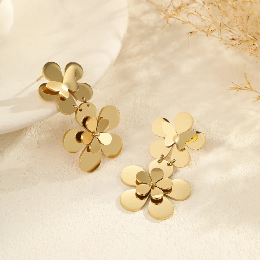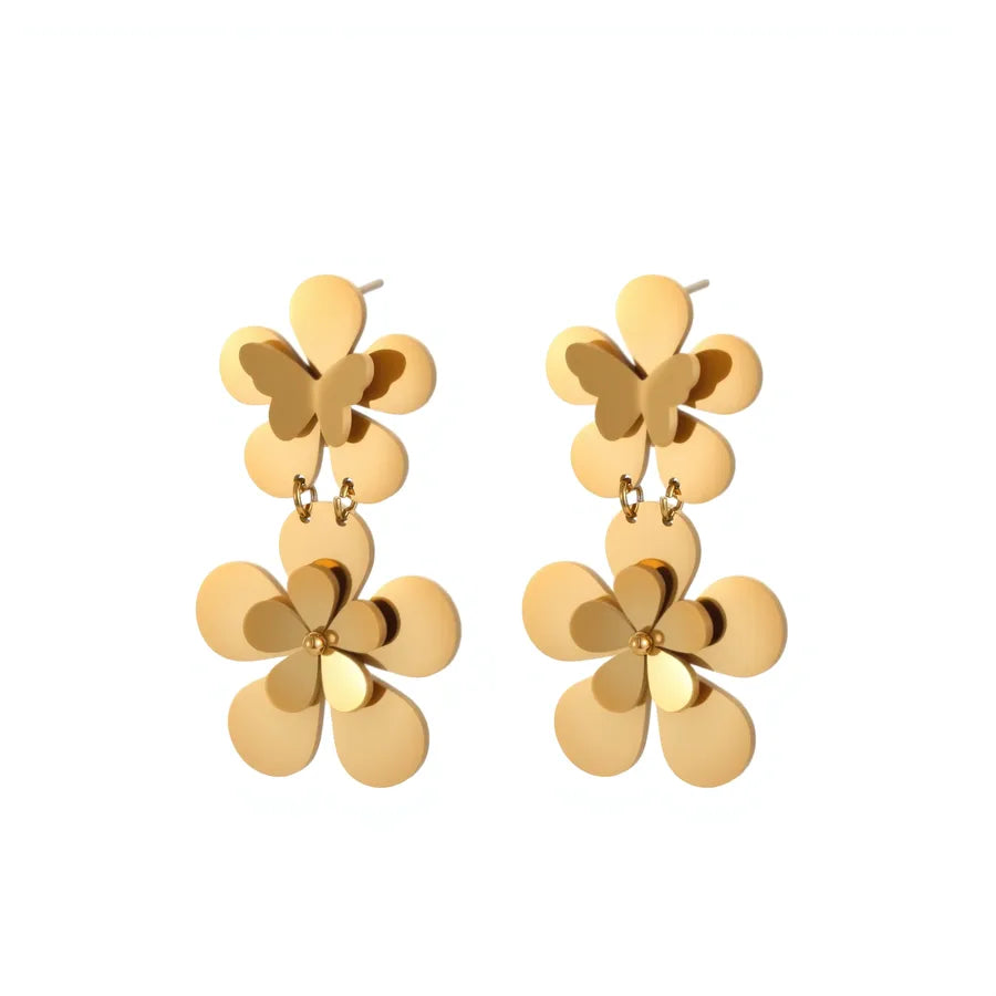 Fashionable Butterfly Flower Stainless Steel Earrings 18K Gold Plated Luxury Design Sensation Ear Jewelry