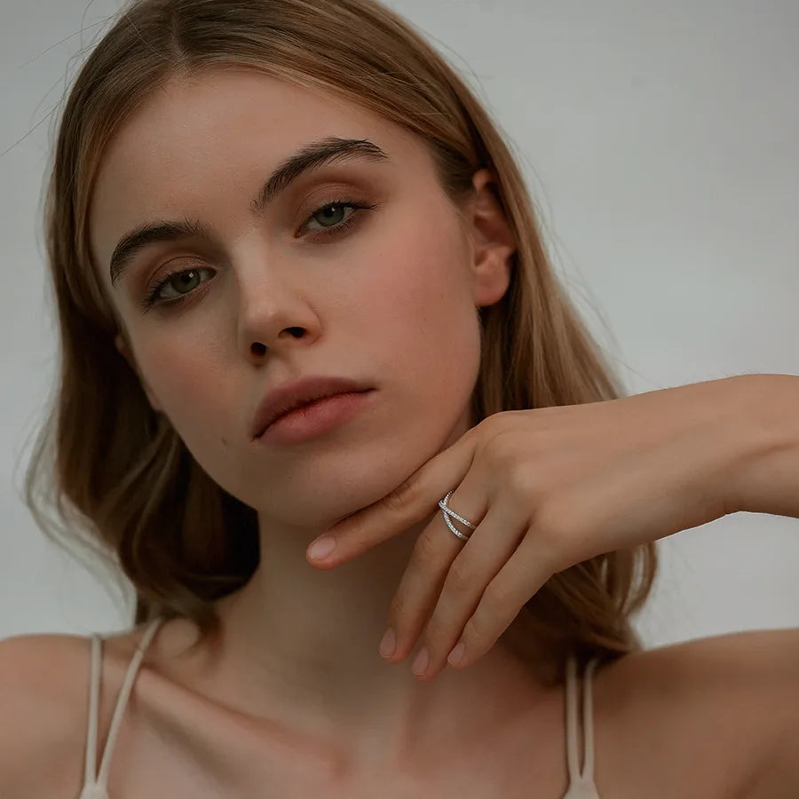 Fashionable Cross Design 925 Sterling Silver Ring With Moissanite For Men And Women Simple Elegant Jewelry Accessory