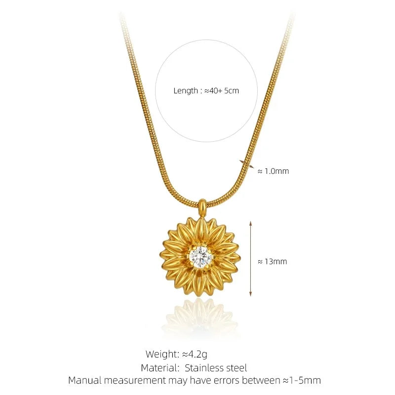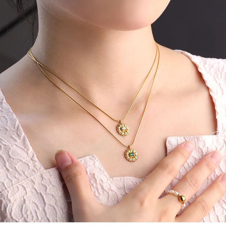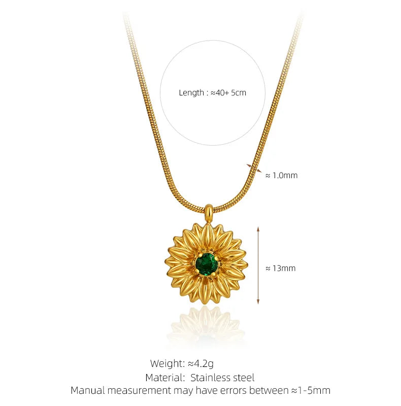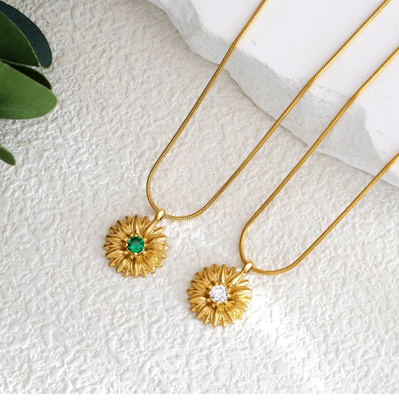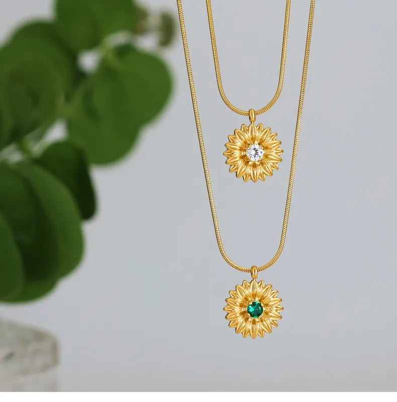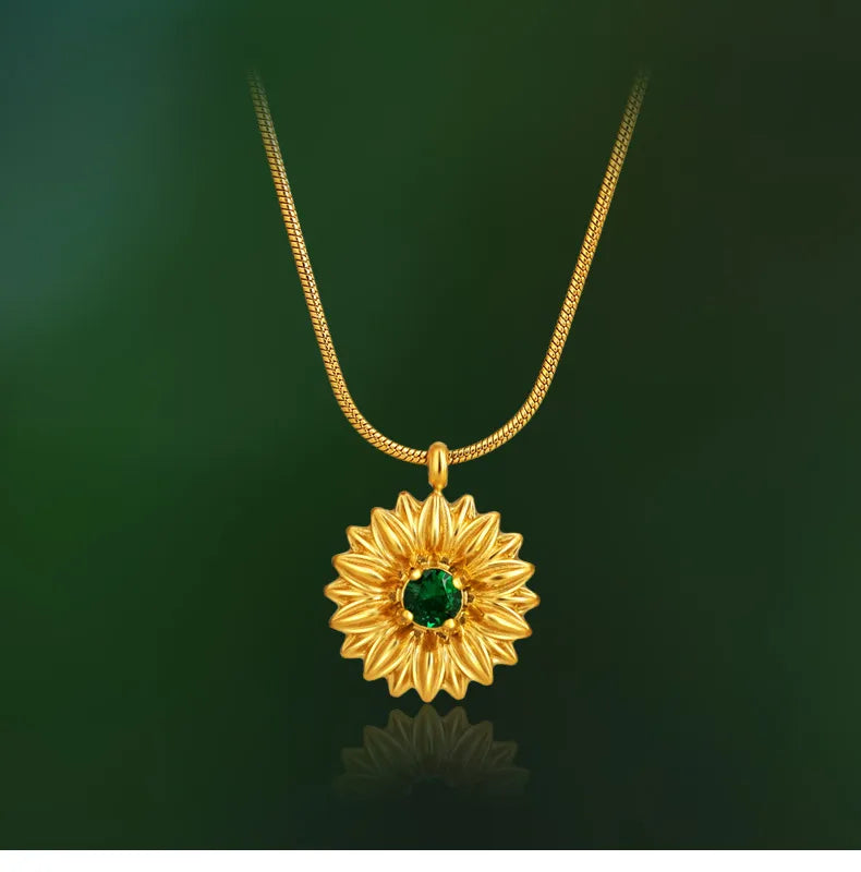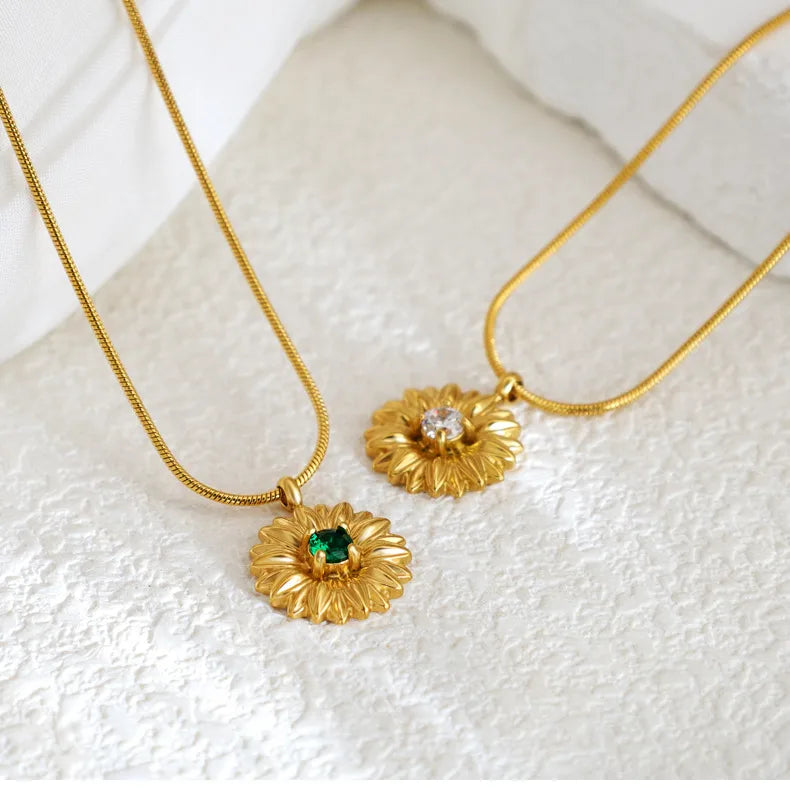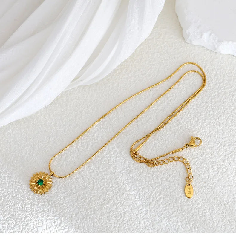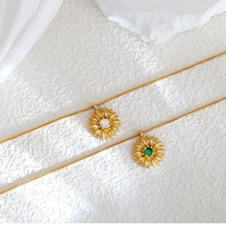French Gold Thread Royal Chrysanthemum Necklace Stainless Steel White Green Diamond Flower Clavicle Chain Commuter Style Bracelet