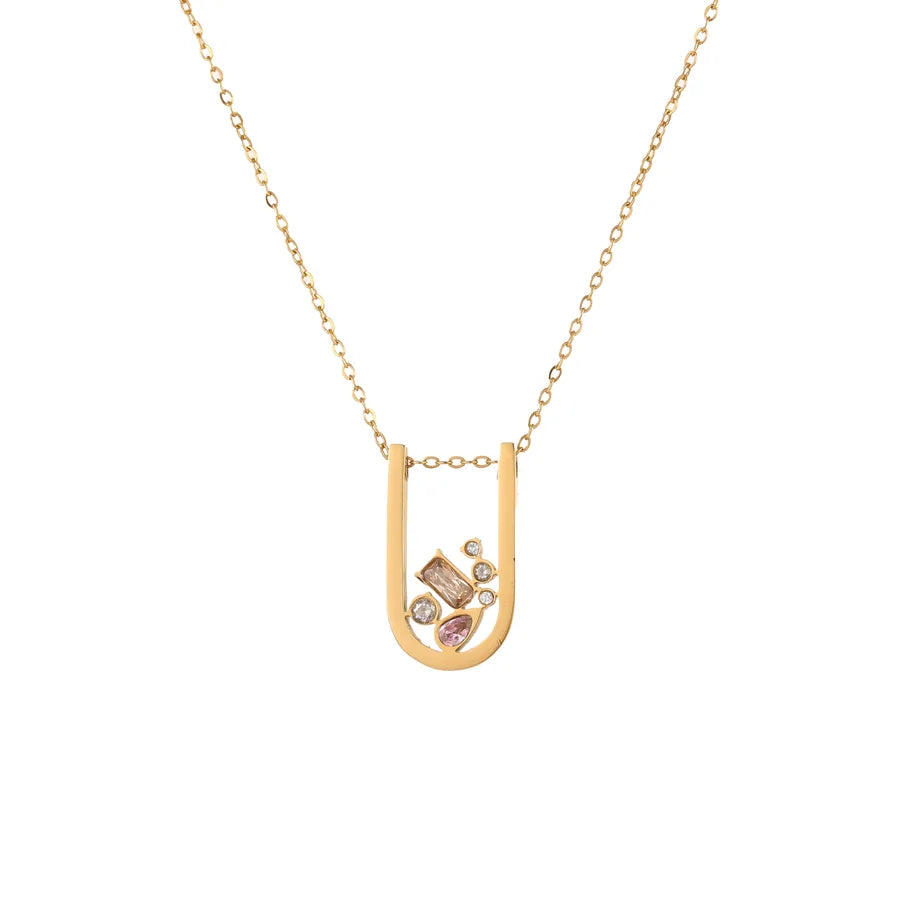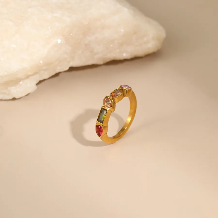 Geometric Colorful Zircon Stainless Steel Necklace 18K Gold Plated Jewelry Set Earrings Rings For Women Holiday Party Daily Use