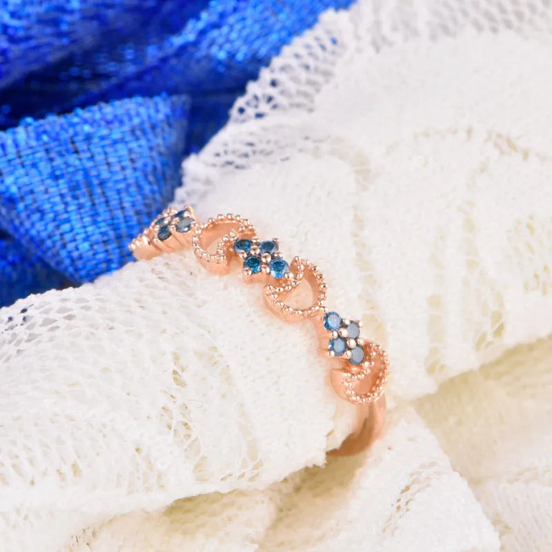 Glamouröser Goldring mit Saphir-Inlays und fein gearbeiteten Details