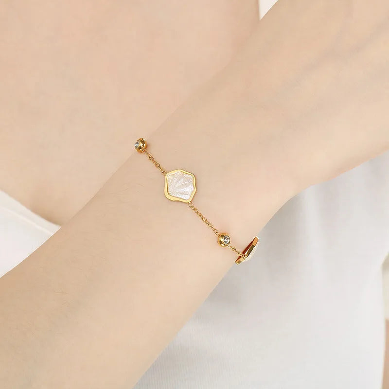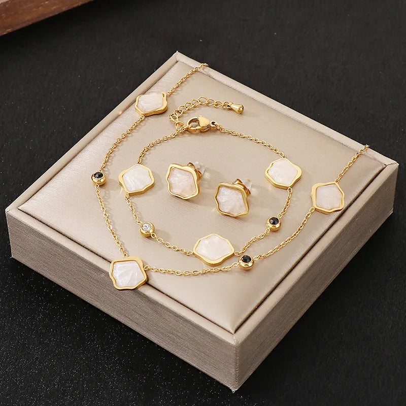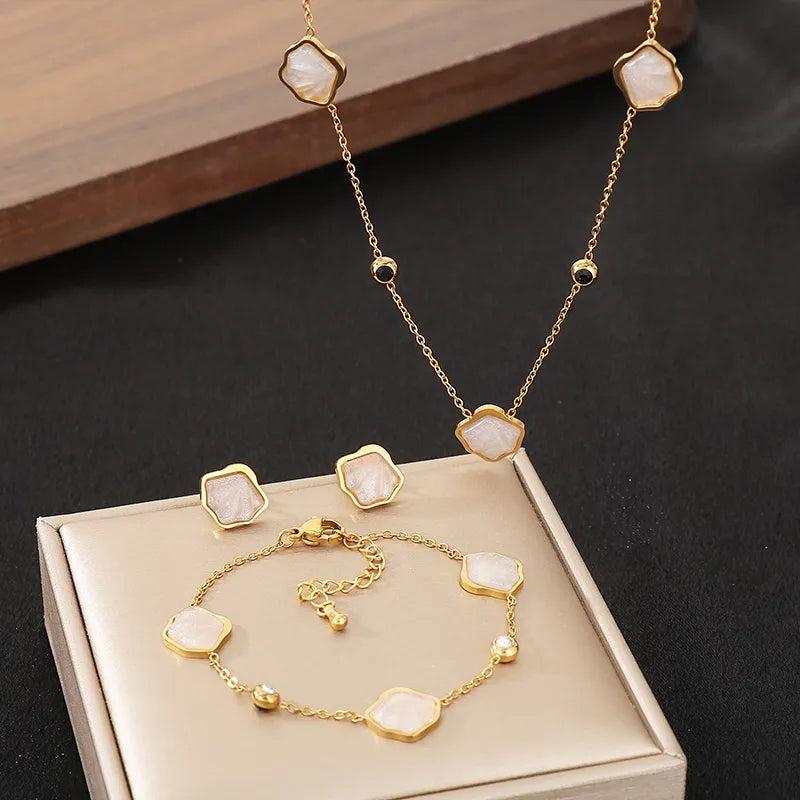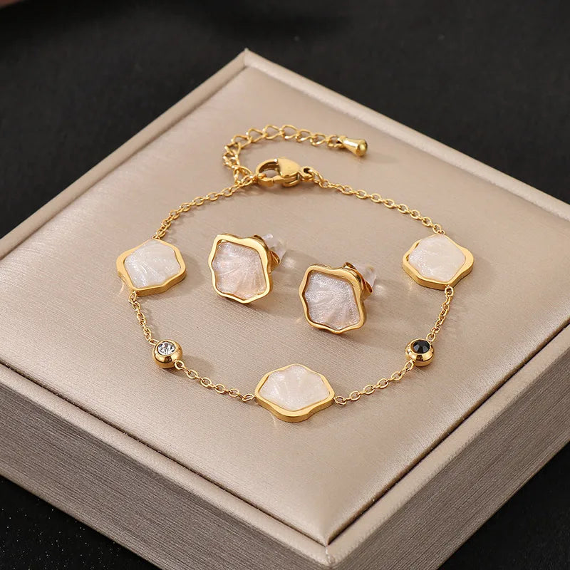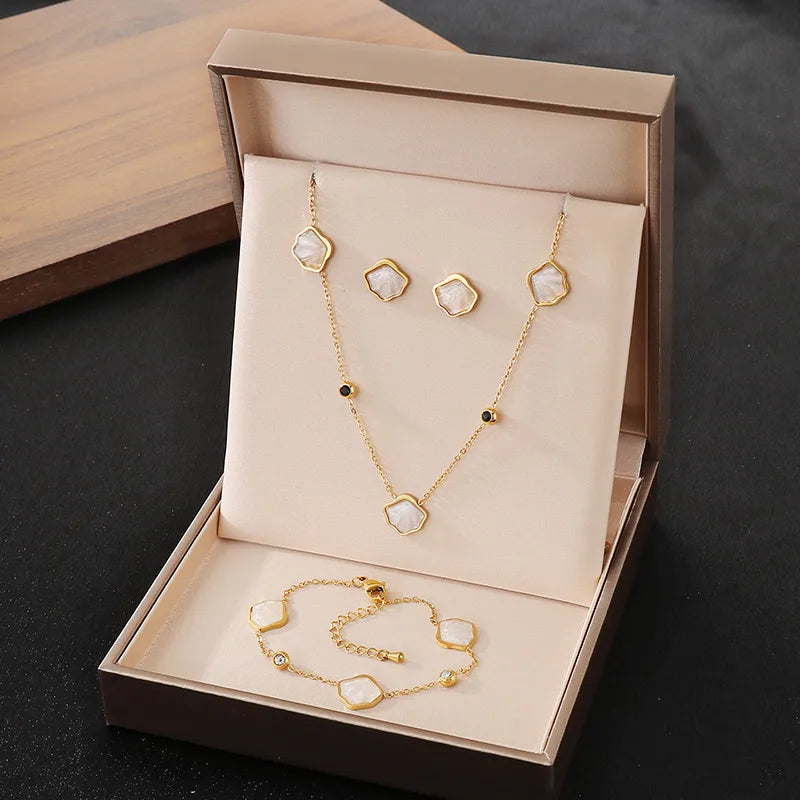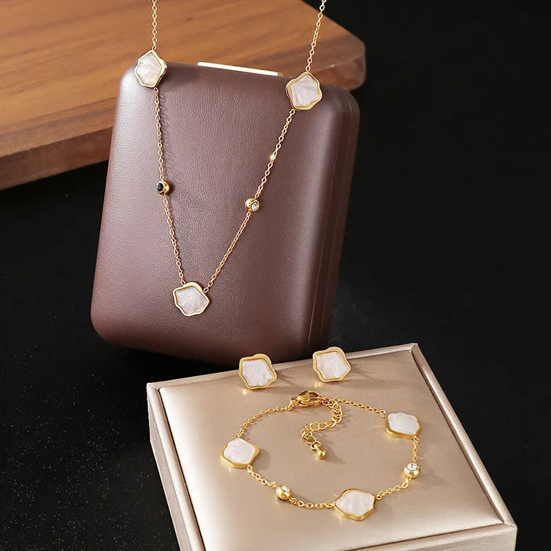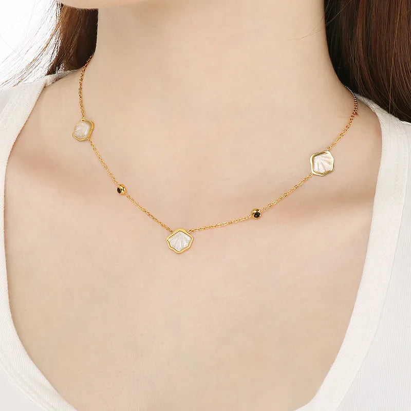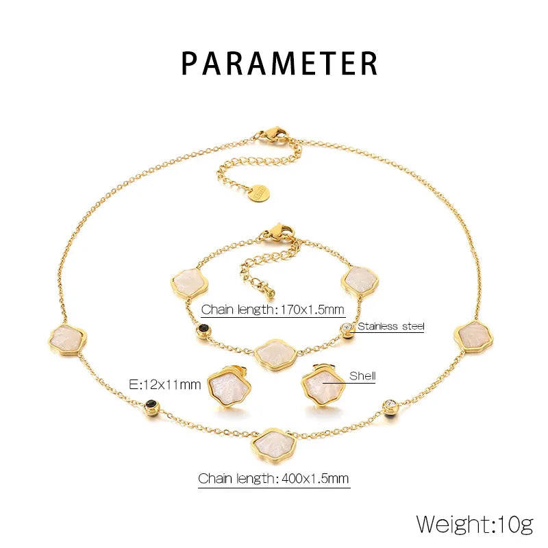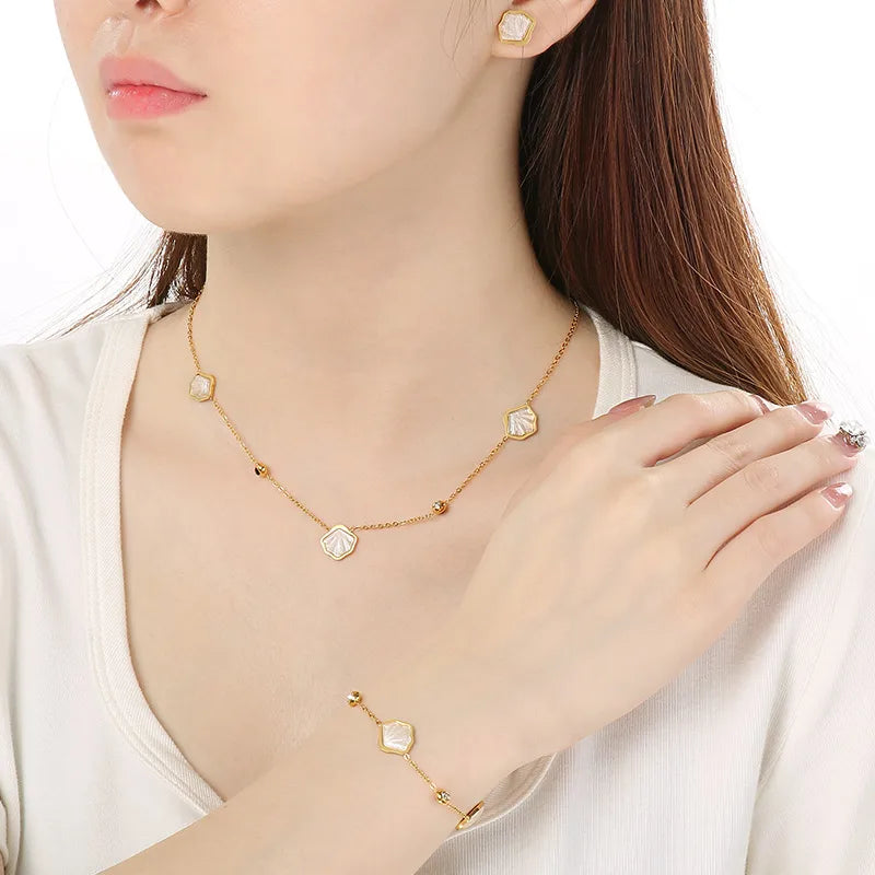 Golden Shell Stainless Steel Jewelry Set For Women Fashion Fresh Ocean Style DIY High-End Clavicle Chain Bracelet And Necklace