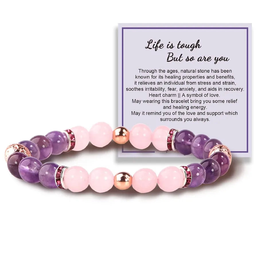 Handmade Pink Quartz Purple Quartz Geometric Pattern Bracelet Single Circle Woven Crystal Bracelet Unisex Ins Style Jewelry