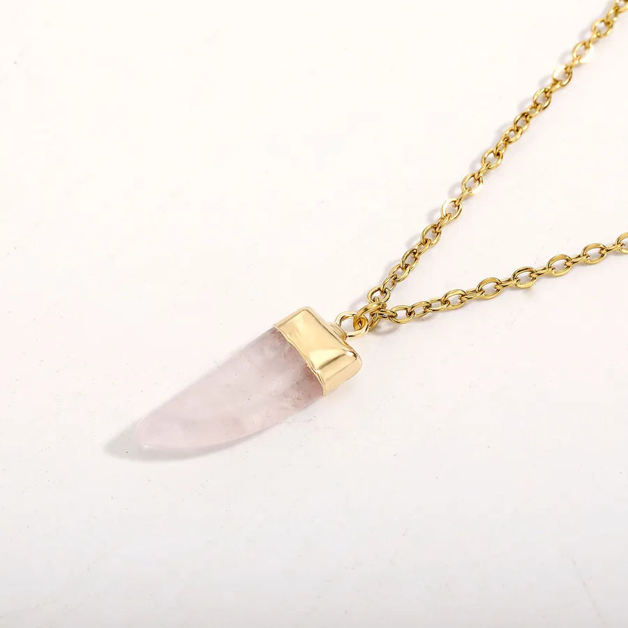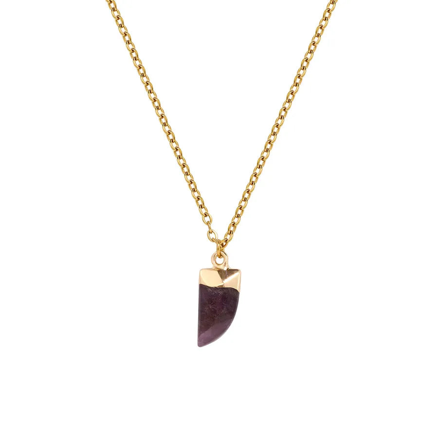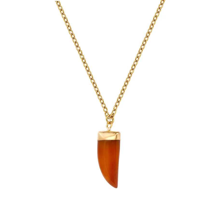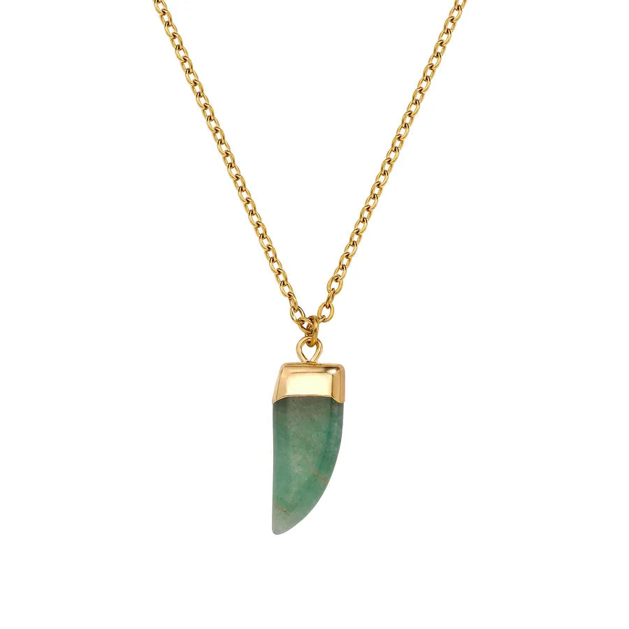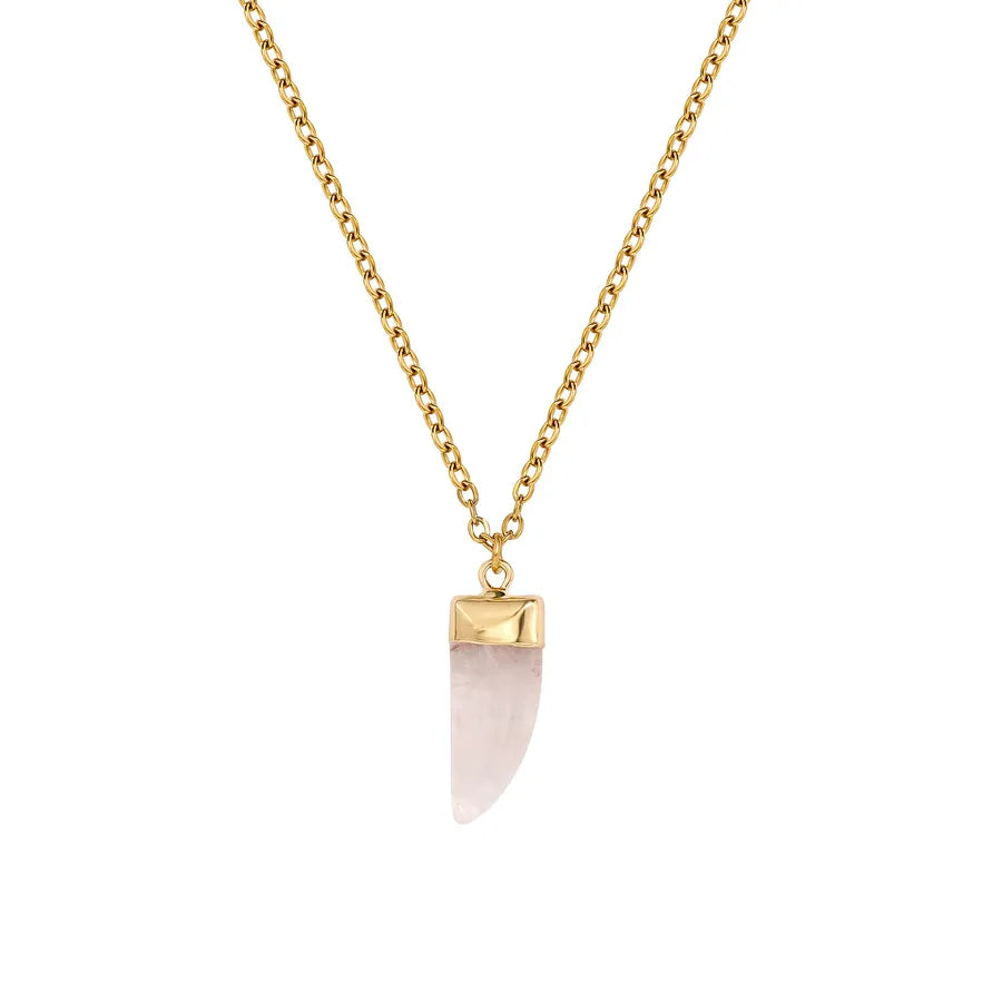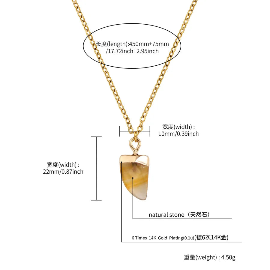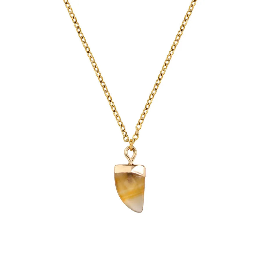 Natural Crystal Agate Moon Pendant Necklace Raw Stone Wolf Tooth Design Geometric Pattern Unisex Chinese Style Jewelry
