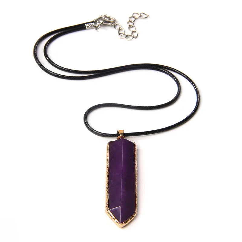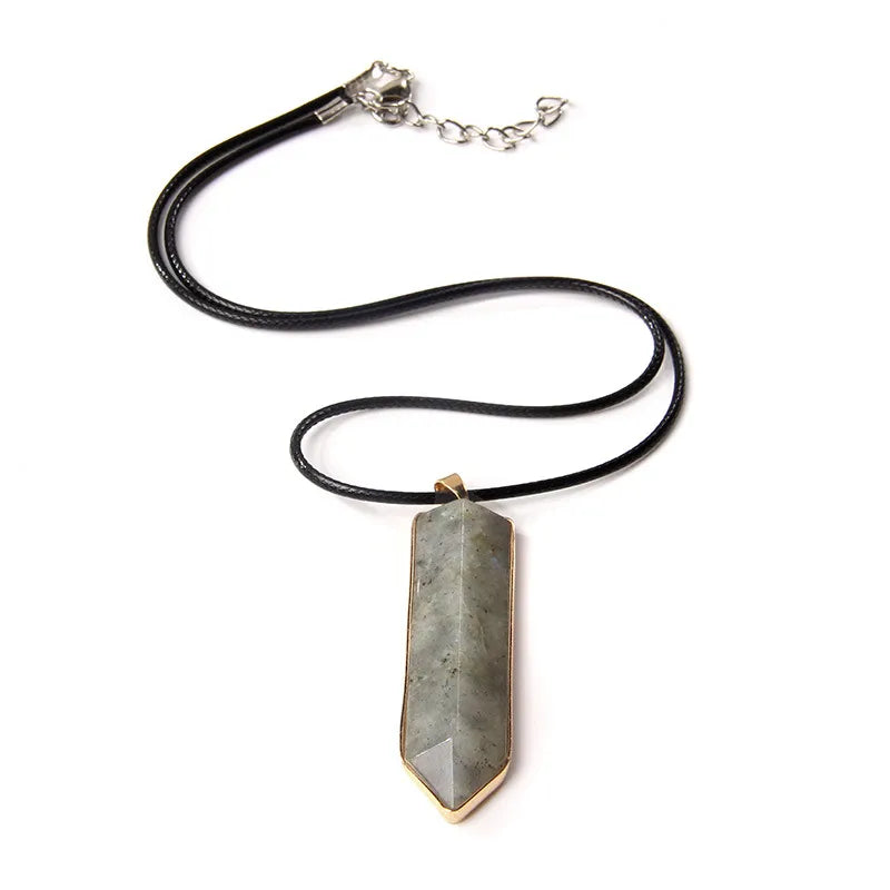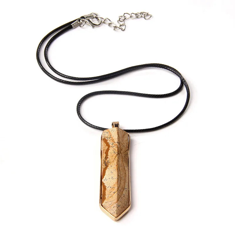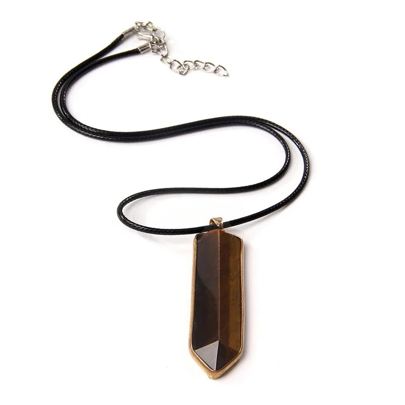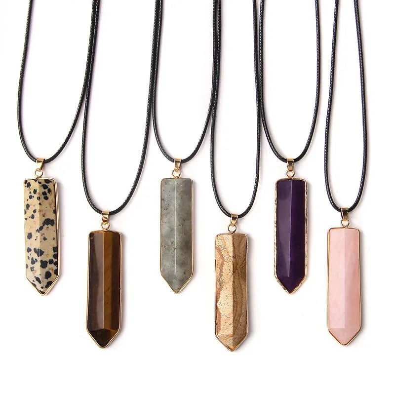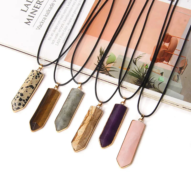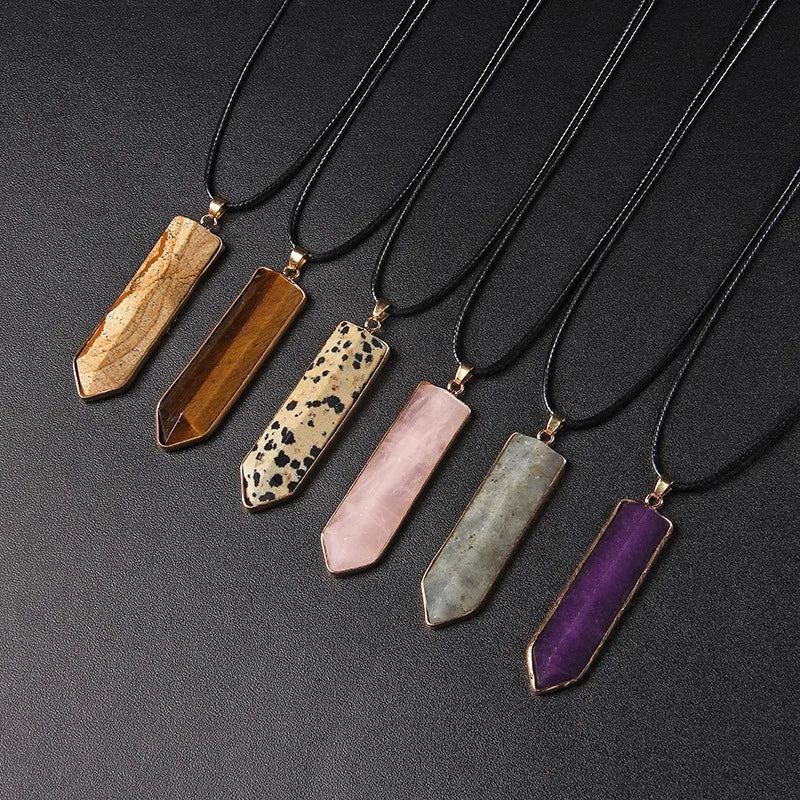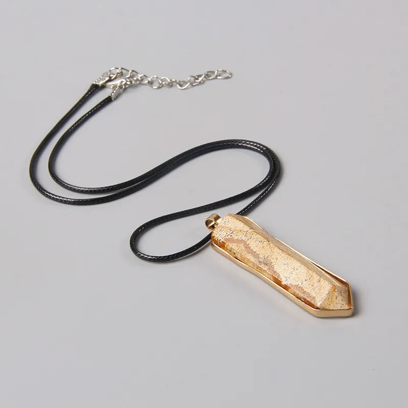 Natural Gemstone Pendant Shiny Stone Cut Bread Edge Gold Pendant Fashion Simple Women's Necklace Jewelry Geometric Pattern