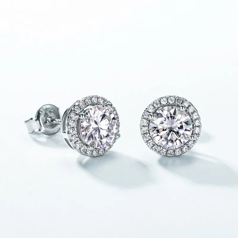 New Simplicity Sparkling 1ct Moissanite Stud Earrings Unisex S925 Silver Full Set Color Gemstone Fashion Jewelry Accessories