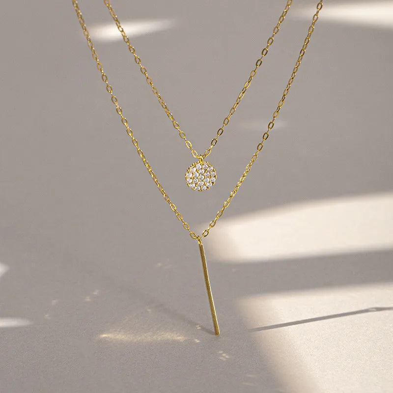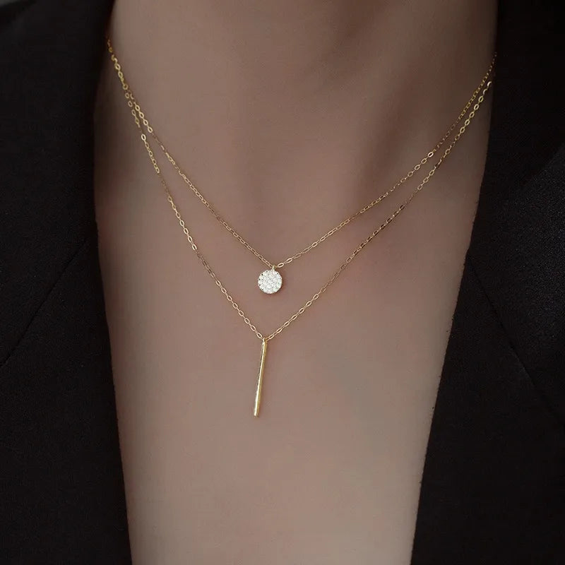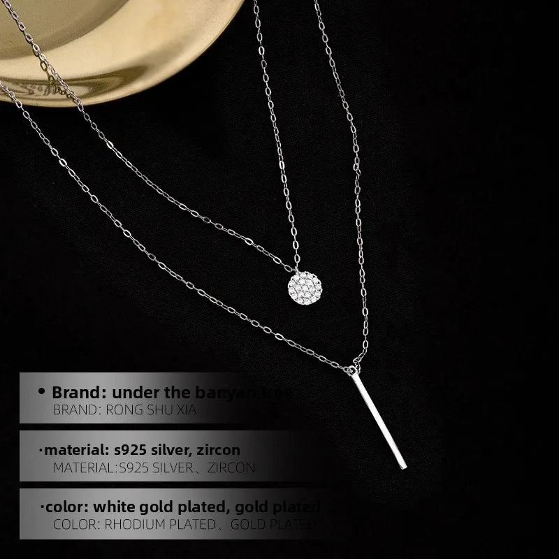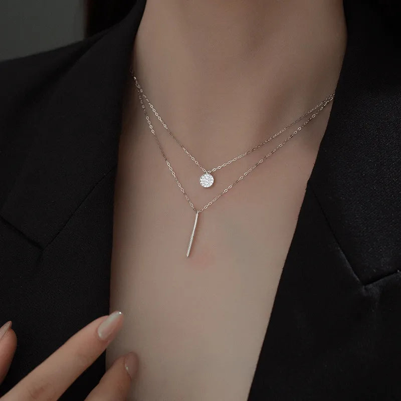 S925 Silver Double Layered Necklace For Women With Sparkling Diamond Pendant Fashionable European Style Clavicle Chain Trendy Luxury Feel