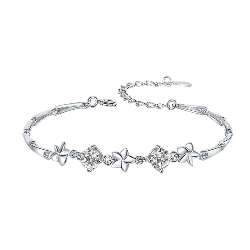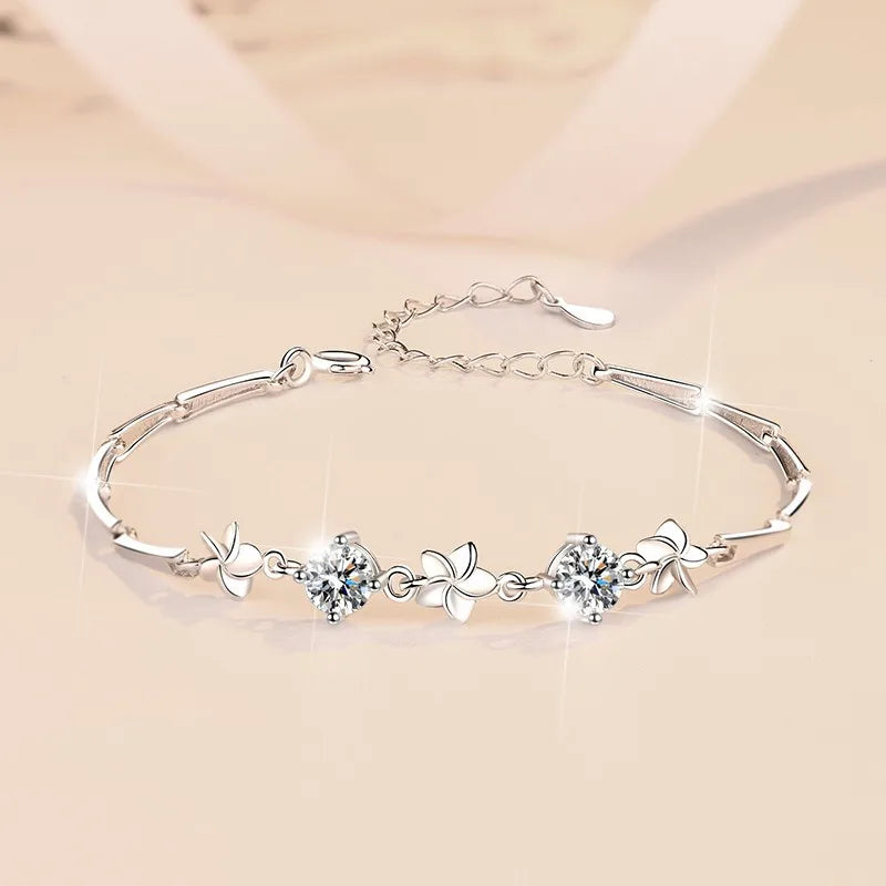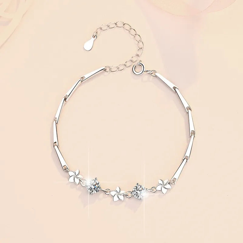 S925 Sterling Silver Bracelet Lucky Four-leaf Clover Fashion Women's Jewelry Morganite Hand Chain Bohemian Style Floral Print
