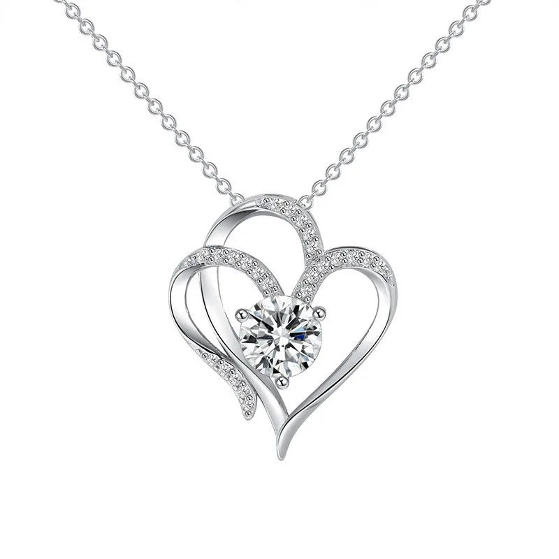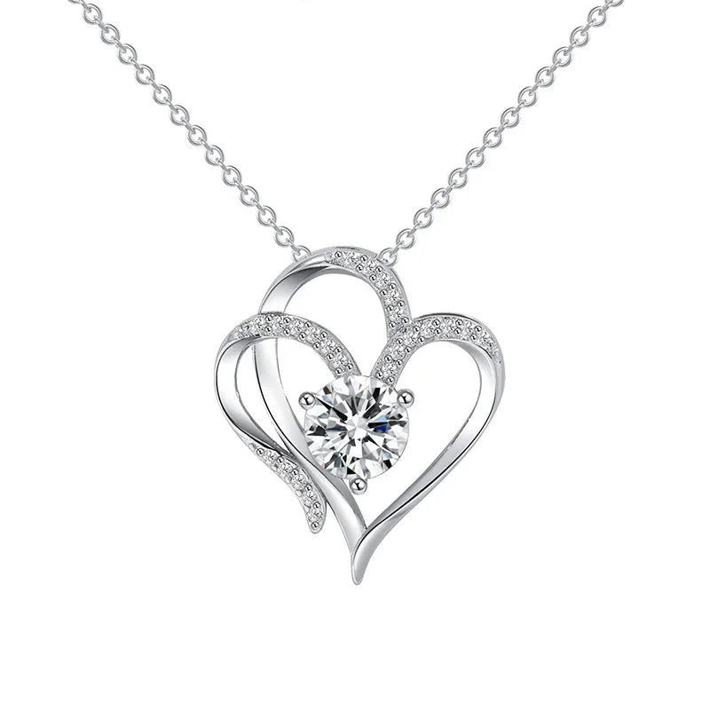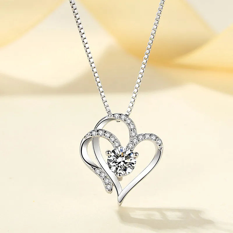 S925 Sterling Silver Double Heart Pendant Necklace With Zirconia Elegant Feminine Design Interlocking Hearts Fashion Jewelry