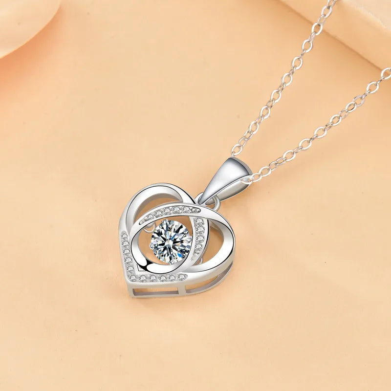 S925 Sterling Silver Heart Shaped Necklace Women's Fashionable Jumping Heart Pendant Valentine's Day Gift Jewelry