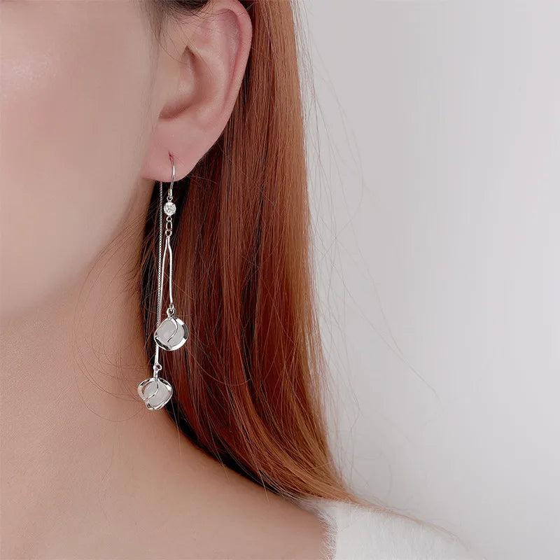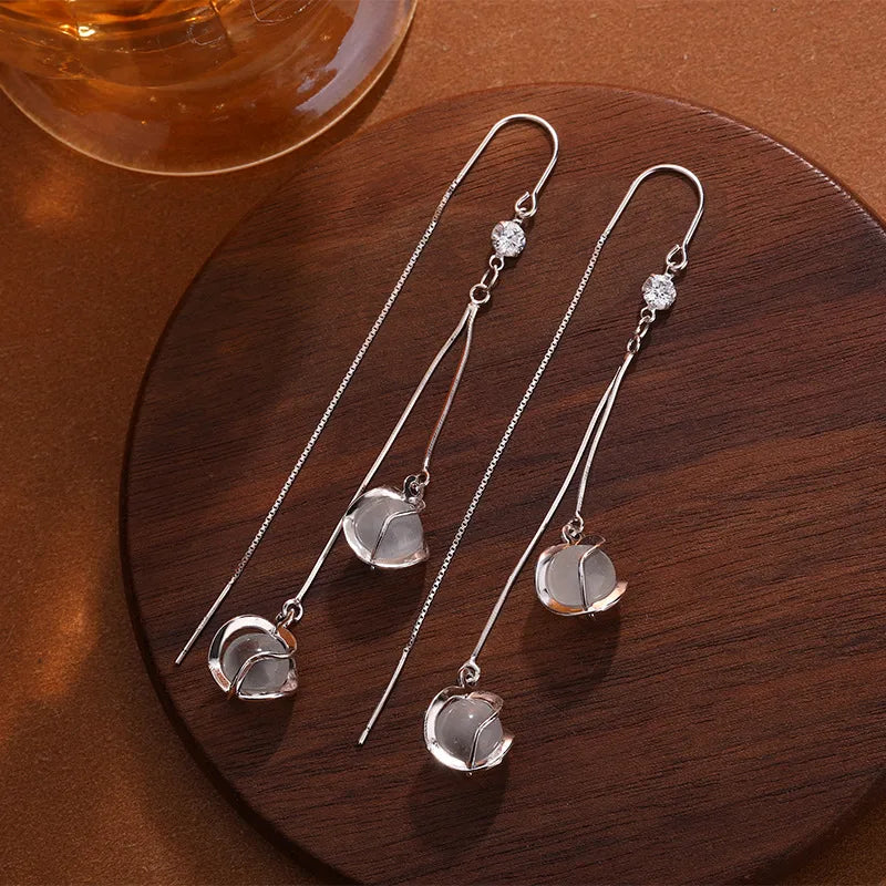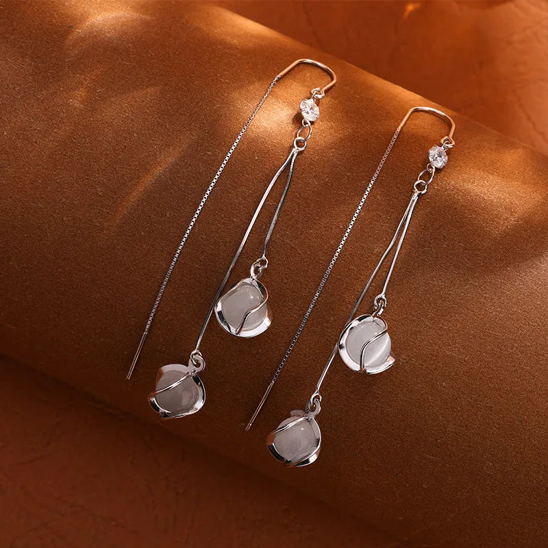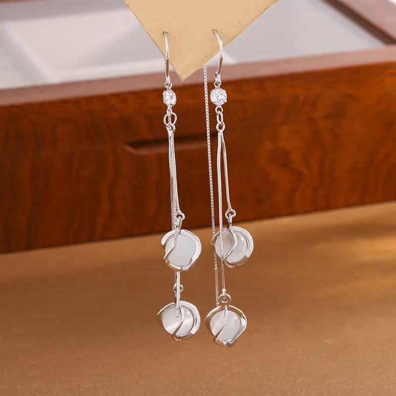 S925 Sterling Silver Long Tassel Earrings Women New Style Luxury Twist Cat Eye Stone Dangle Earrings Super Fairy Ear Wire Elegant Jewelry