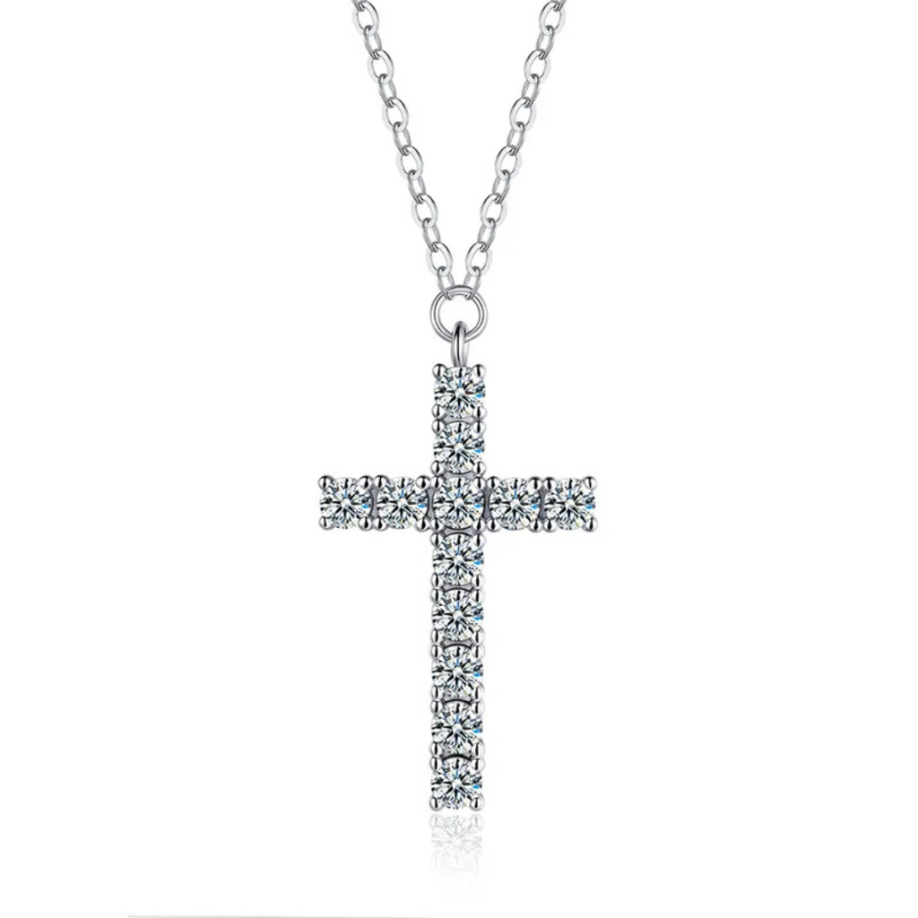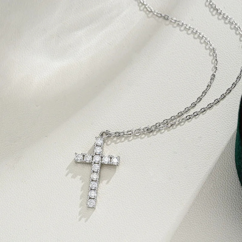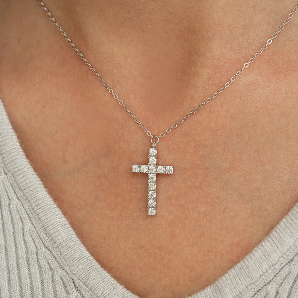 Silberhalskette mit Kreuzanhänger und Zirkonia-Kristallen