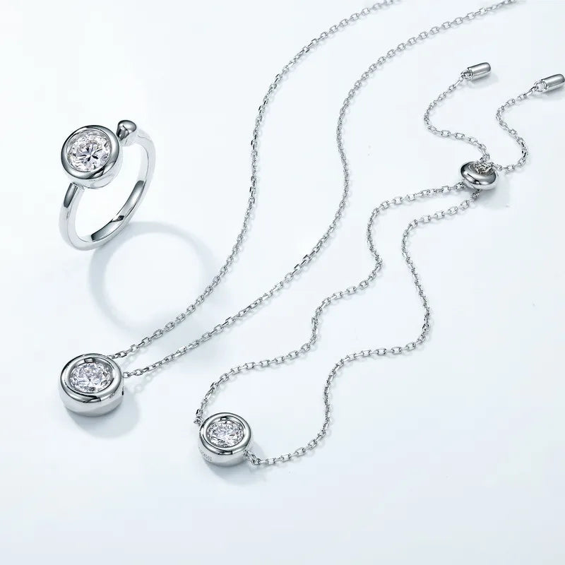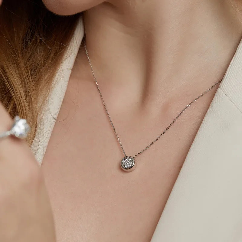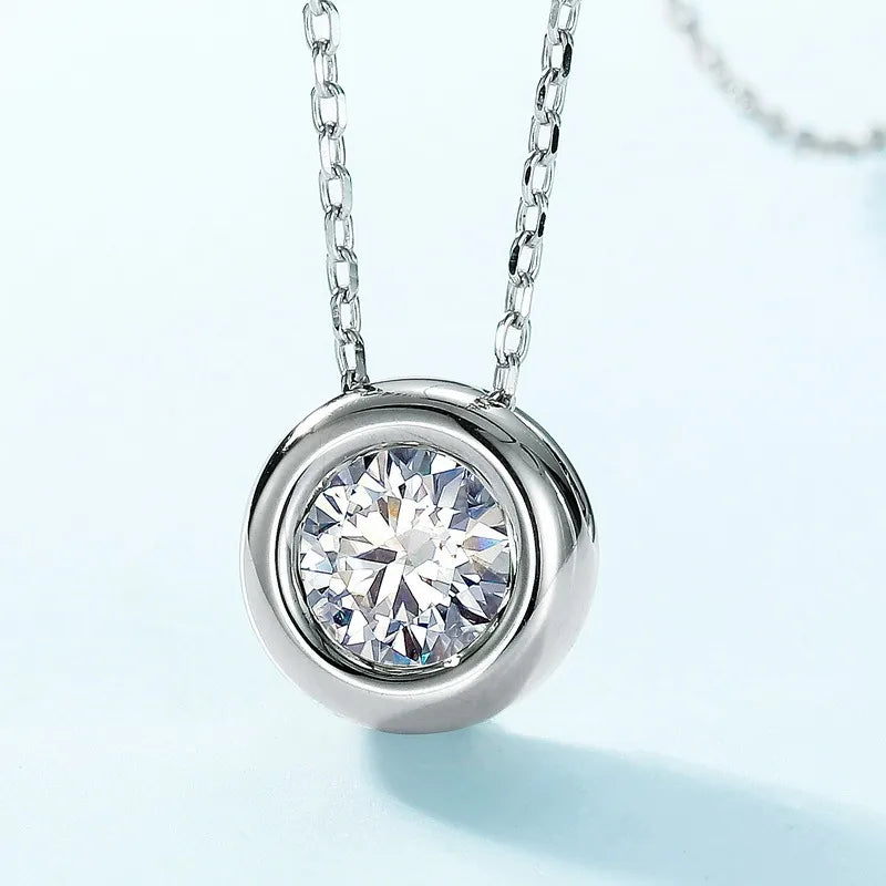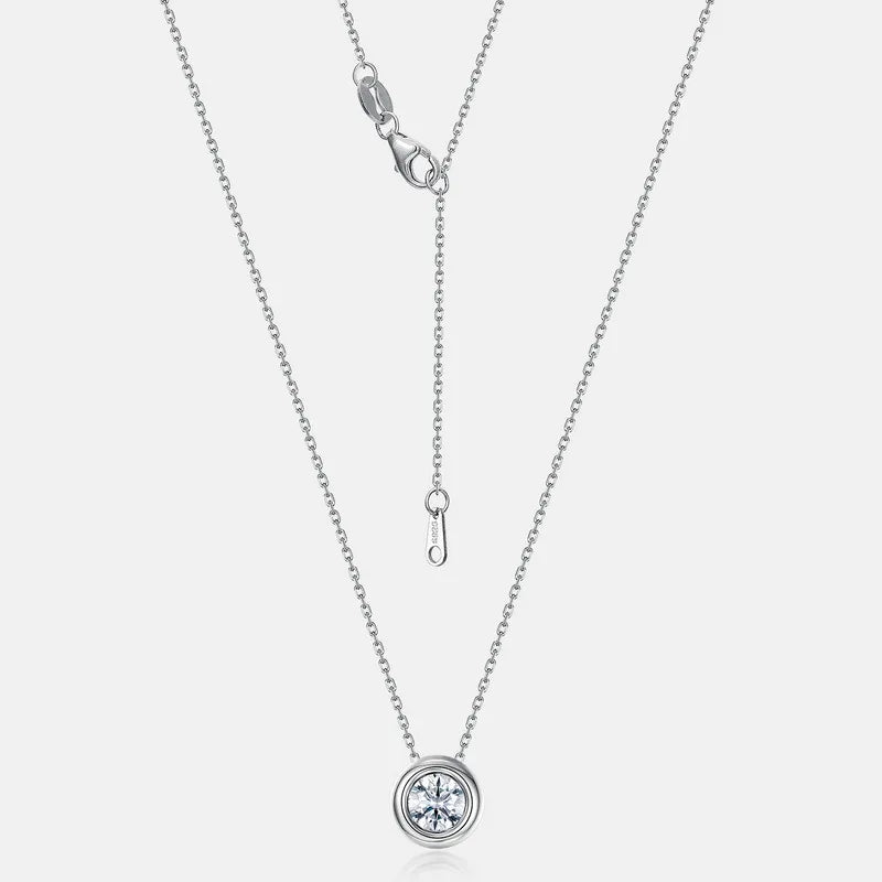 Simple Elegant 1ct Moissanite Women's Necklace S925 Silver Color Gemstone Embellished Choker Fashionable Geometric Pattern