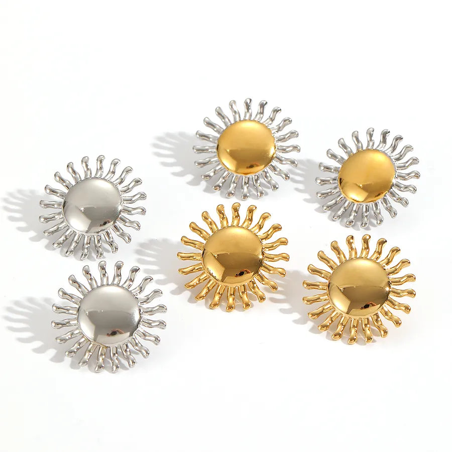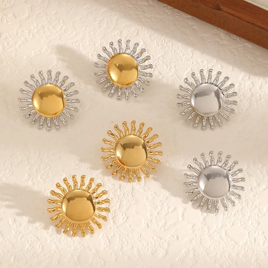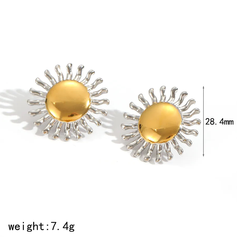 Sunshine Style Women's Earrings 18K Gold Plated Stainless Steel Multicolor Large Sun Fashion Design High-End Feeling Jewelry
