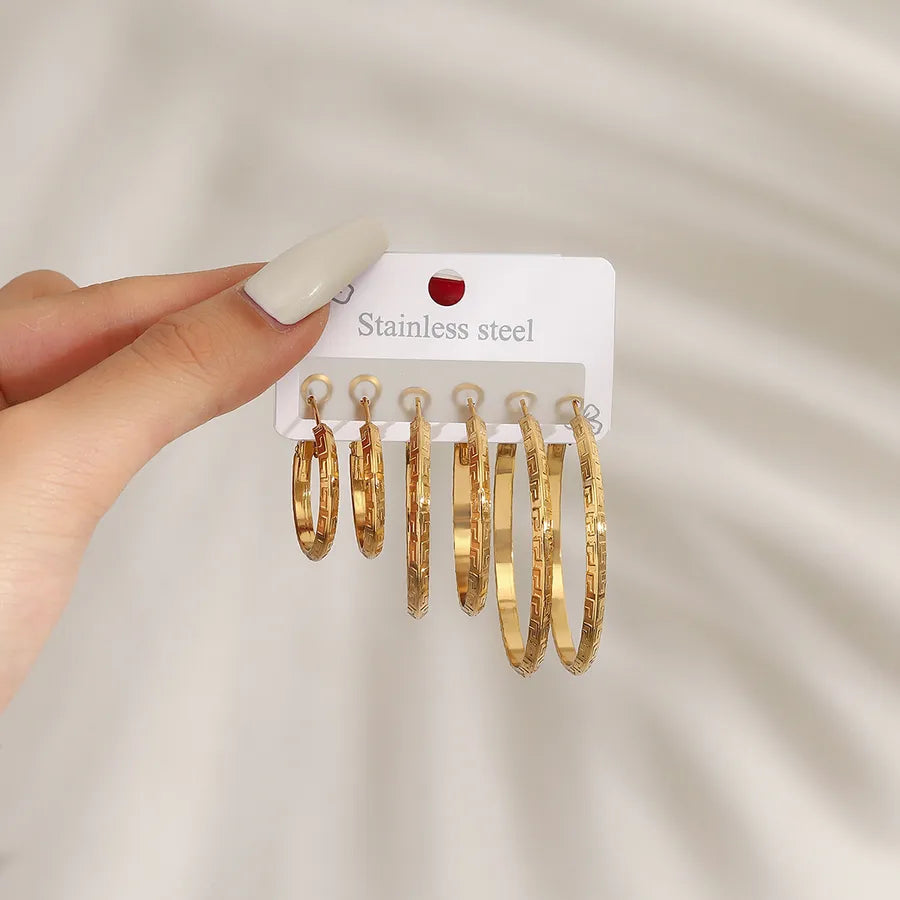 Titanium Steel Stainless Steel Round Earrings 3 Piece Set Multi-Functional Quality For Commuting And Casual Occasions Women's Jewelry