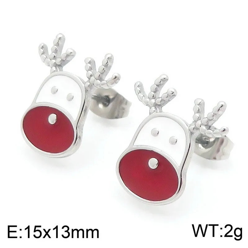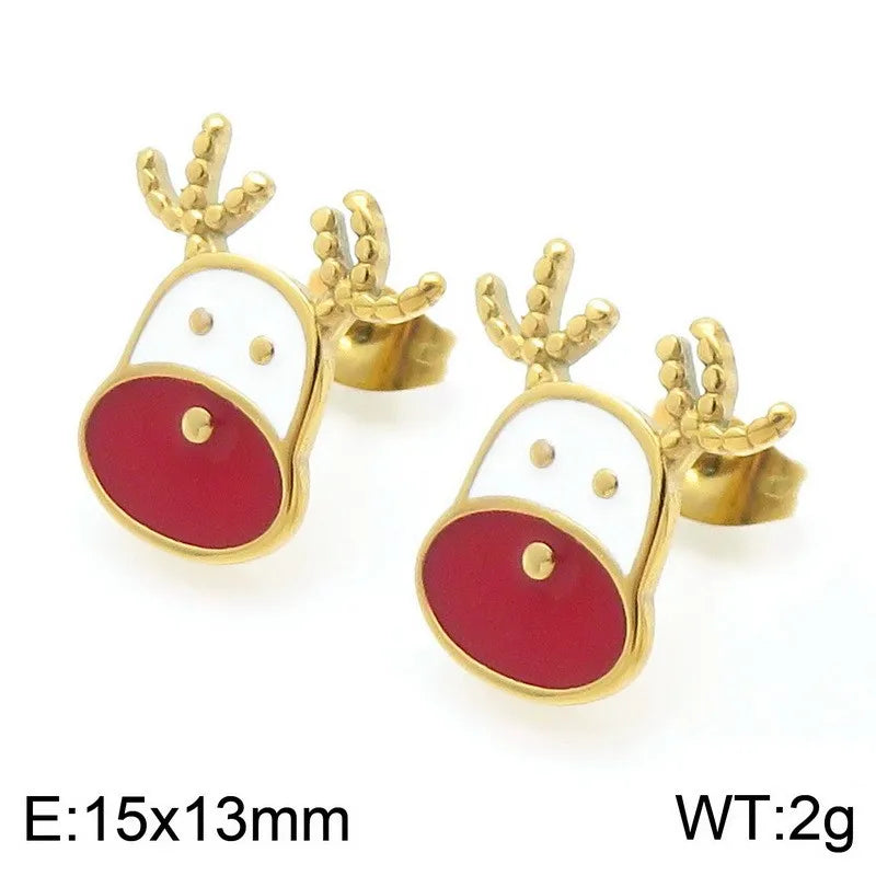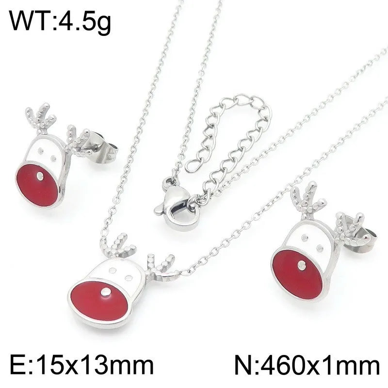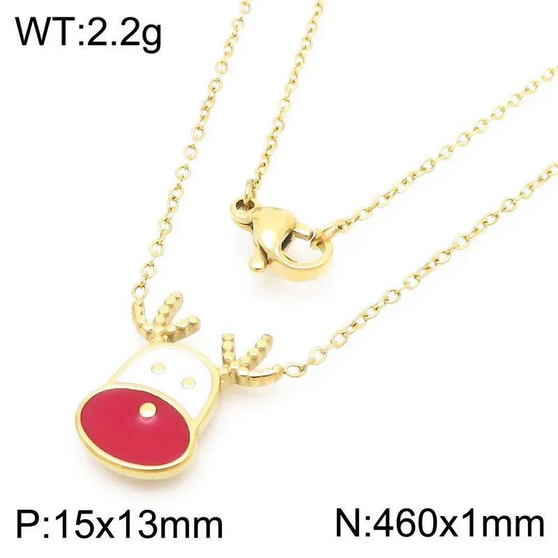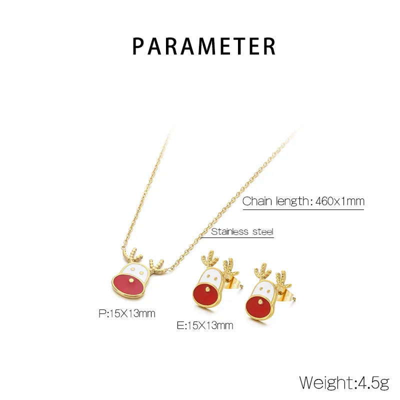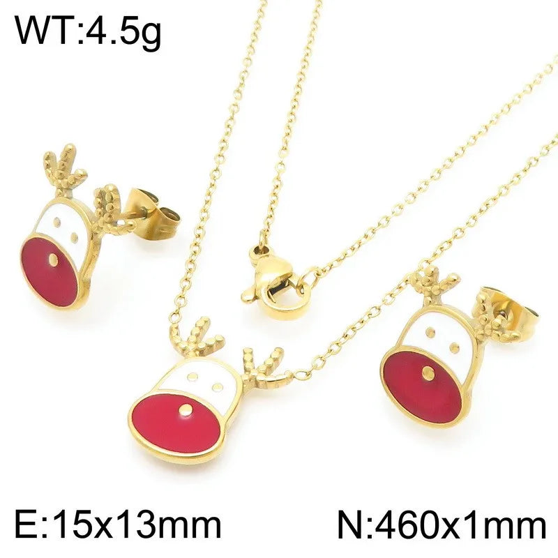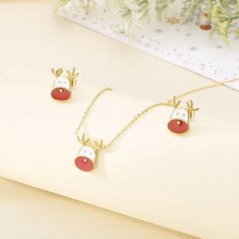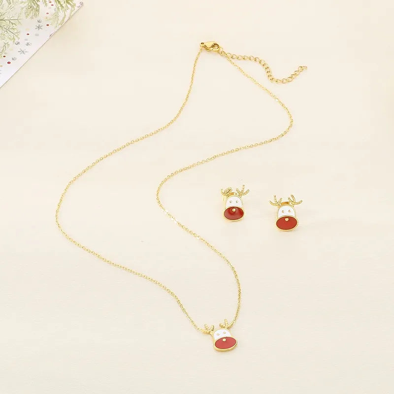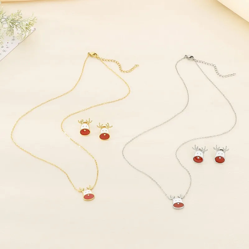 Wholesale Jewelry Cute Simple Style Elk 304 Stainless Steel 18K Gold Plated Enamel Earrings Necklace cable chain